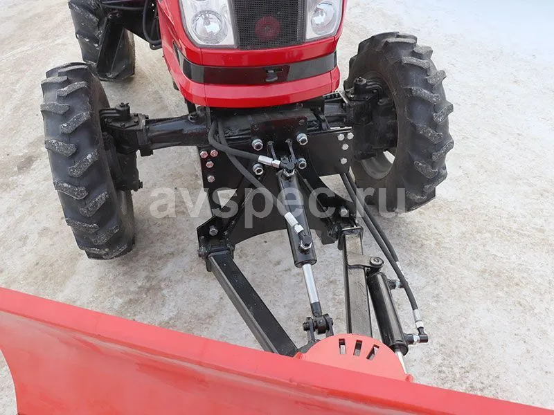 Ширина лопаты (отвала) составляет 2 метра, а высота - 750 мм. Угол поворота отвала составляет 30/30 градусов и производится гидравлическим способом, что позволяет эффективно очищать проезжую часть от снега и мусора. Резиновые технические пластины размером 500х40х125 мм обеспечивают более качественную уборку и защиту дорожного покрытия. Вес отвала - 130 кг. Он легко крепится на раму трактора спереди и может использоваться совместно с погрузчиком, не мешая его установке.